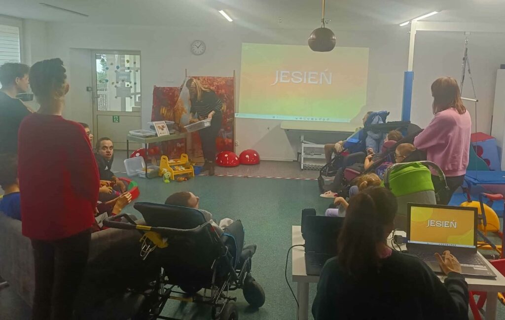 W ramach podsumowania innowacji pedagogicznej „Jesień w dotyku, dźwięku i obrazie” odbyło się spotkanie integracyjne, podczas którego uczestnicy indywidualnych i zespołowych zajęć rewalidacyjno-wychowawczych w twórczy i sensoryczny sposób odkrywali uroki jesieni.